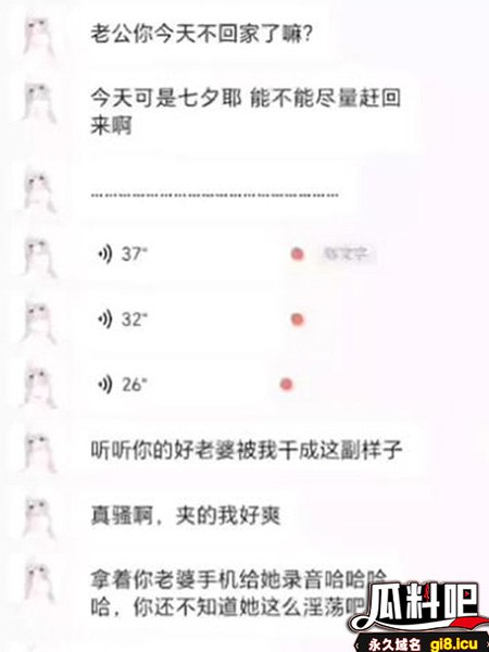 瓜料吧吃瓜网黑料爆料网七夕节惊天大瓜!瓜友加班被绿!老婆偷情叫声录音被情夫发送过来!简直是杀人诛心!#七夕