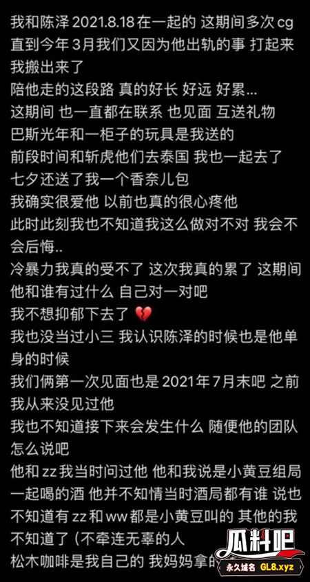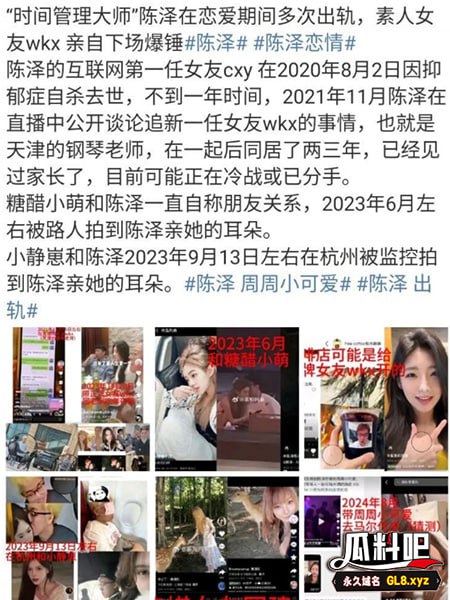 瓜料吧吃瓜网黑料爆料网抖音千万粉丝 陈泽 塌房被女友曝光多次出轨等事迹#陈泽 #网红#周周小可爱 #陈泽睡粉 #17吃瓜 #出轨 #瓜料吧#51吃瓜