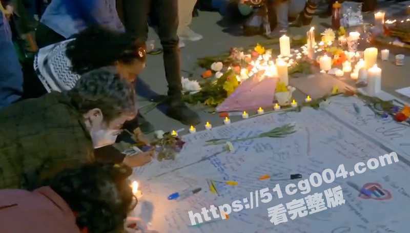 随后很多美国民众自发来到街上纪念这位英雄 抗议美国参与插手巴以冲突 呼吁和平